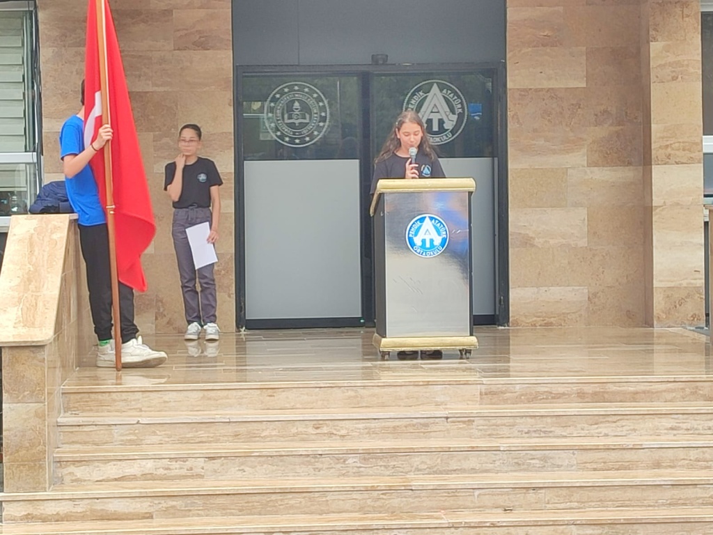 Saygı duruşu ve İstiklal Marşı ile başlayan tören öğrencilerimiz tarafından okunan şiirlerle devam etti. Programda emeği geçen öğretmen ve öğrencilerimize teşekkür ederiz.